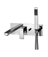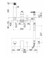 • piastra in acciao inox 350x120mm• bocca con aeratore M28x1• doccia e flessibile• attacchi 1/2”G