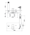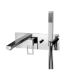 • piastra in acciao inox 350x120mm• bocca con aeratore M28x1• doccia e flessibile• attacchi 1/2”G