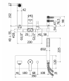 • piastra in acciao inox 350x120mm• bocca con aeratore M28x1• doccia e flessibile• attacchi 1/2”G