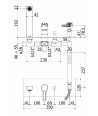 • piastra in acciao inox 350x120mm• bocca con aeratore M28x1• doccia e flessibile• attacchi 1/2”G